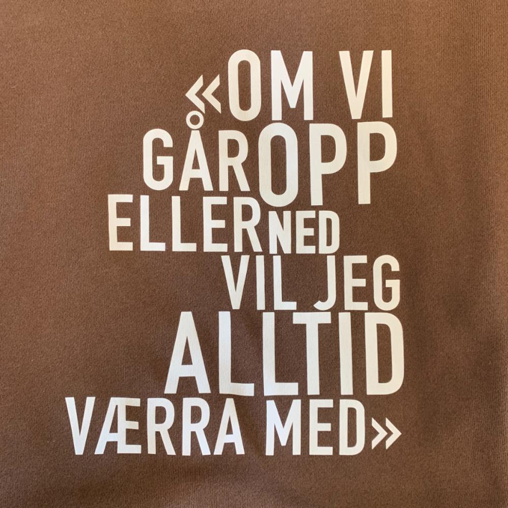 Trykk som kan velges til bl.a hettegenser, brun eller hvit t-skjorte